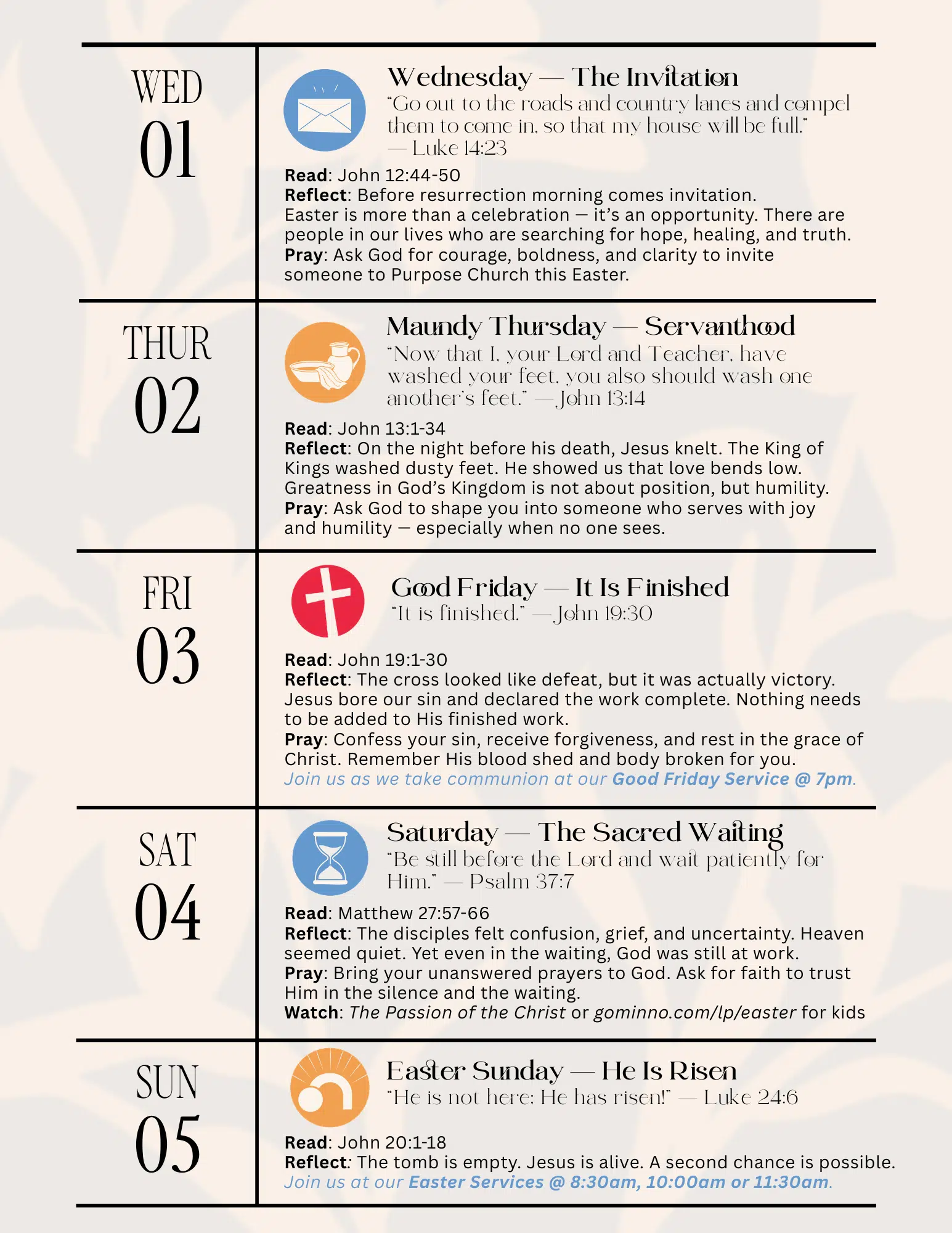 Download the INVITE VIDEO or EASTER GRAPHICS to post on your social media channels or text an invite directly.